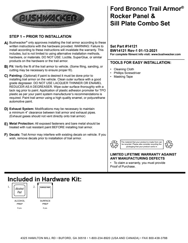 You purchased the toughest truck on the market and you absolutely love taking it off-road but how do you ensure it looks like new when you arrive for a night out. Arm it with the ultimate protection for rocker panels and sill plates, Bushwacker's Trail Armor for trucks built to armor your investment from anything your tires may pick up and throw at your truck. Plus, Trail Armor for trucks upgrades the look of your truck by covering unsightly pinch welds and infuses well-seasoned trucks with style by concealing eyesores like rust and dings.