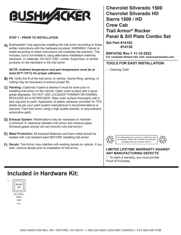 You purchased the toughest truck on the market and you absolutely love taking it off-road but how do you ensure it looks like new when you arrive for a night out. Arm it with the ultimate protection for rocker panels and sill plates, Bushwacker's Trail Armor for trucks built to armor your investment from anything your tires may pick up and throw at your truck. Plus, Trail Armor for trucks upgrades the look of your truck by covering unsightly pinch welds and infuses well-seasoned trucks with style by concealing eyesores like rust and dings.