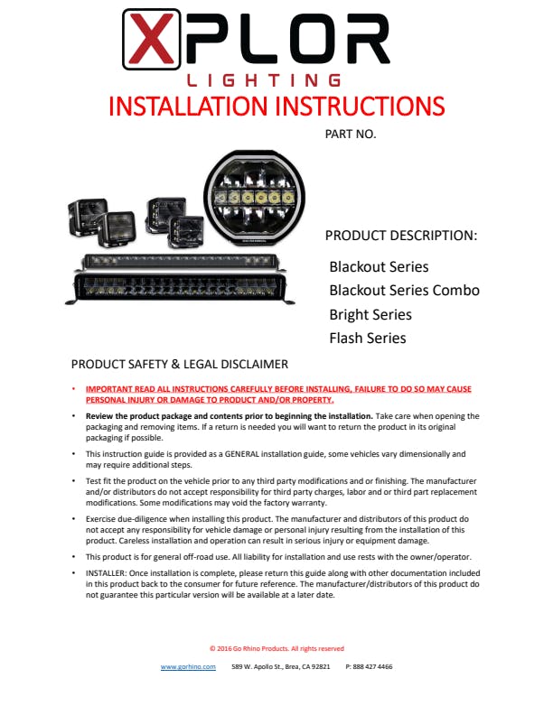 Go Rhino's BRIGHT Series of LED lights has become a trusted source for customers seeking a reliable, high-quality, and affordable lighting product. The series offers an extensive selection of sizes, models, and optics, providing options to meet practically any requirement, with the same great quality and customer support as our higher-end offerings. The BRIGHT Series is excellent for customers searching for the ultimate value, offering the best ‘bang for the buck’ lighting in the XPLOR lineup.