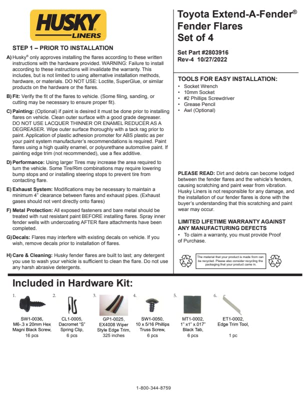 - Extend-A-Fender(R) Flares are covered by Husky Liners Limited Lifetime Warranty, featuring Husky's legendary durability, so they're built to last. Proudly made in the USA with global materials.